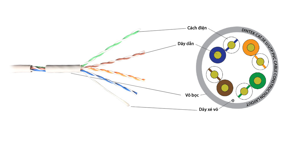 Cấu trúc của cáp mạng DINTEK Cat5e UTP 100m bao gồm: