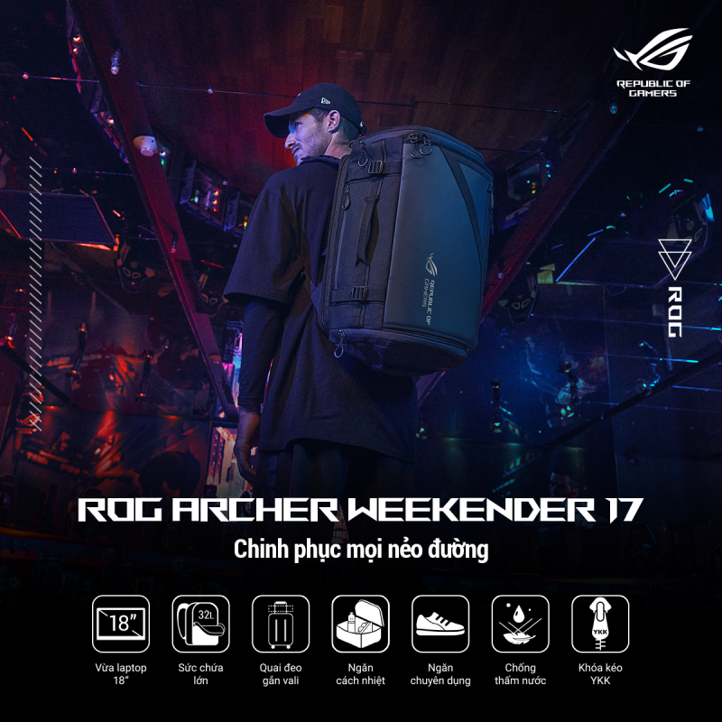 BP2703 ROG Archer Weekender/17/BK/2 in 1 – Ba lô đa năng cho game thủ và người dùng công nghệ