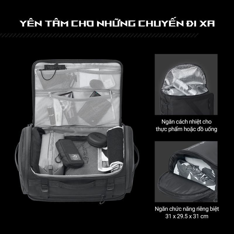Với không gian chứa lớn, BP2703 ROG Archer Weekender cho phép bạn dễ dàng mang theo quần áo, phụ kiện, và các vật dụng cá nhân cho những chuyến đi ngắn ngày. Sự kết hợp giữa không gian lưu trữ rộng rãi và thiết kế gọn nhẹ giúp bạn sắp xếp đồ đạc một cách khoa học và tiện lợi.