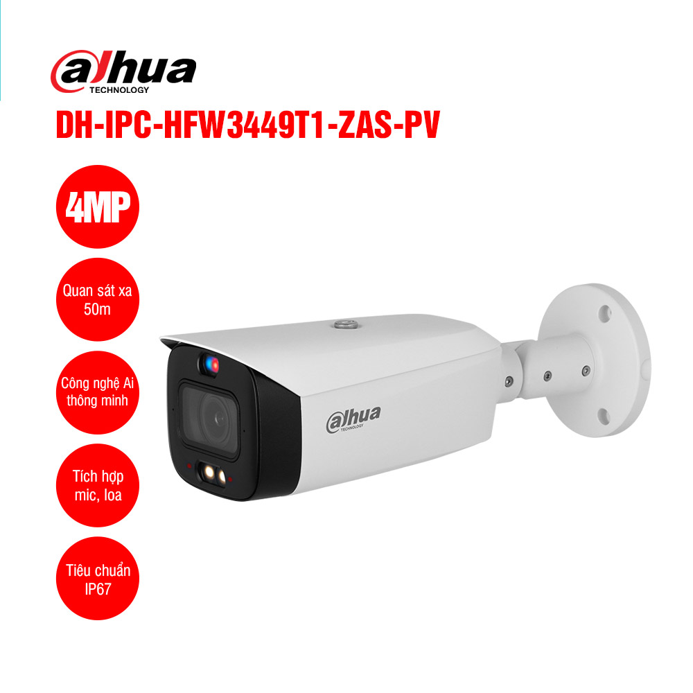 DAHUA DH-IPC-HFW3449T1-ZAS-PV camera quan sát IP chính hãng, thiết kế dạng thân trụ, với công nghệ hồng ngoại thông minh. Camera hỗ trợ chống ngược sáng DWDR tốt cùng tầm quan sát xa 50 mét, hỗ trợ tính năng phát hiện thông minh, tích hợp míc. Hỗ trợ chống bụi nước IP67.