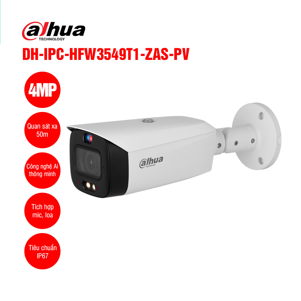 DAHUA DH-IPC-HFW3549T1-ZAS-PV camera quan sát IP chính hãng, thiết kế dạng thân trụ, với công nghệ hồng ngoại thông minh. Camera hỗ trợ chống ngược sáng DWDR tốt cùng tầm quan sát xa 50 mét, hỗ trợ tính năng phát hiện thông minh, tích hợp míc. Hỗ trợ chống bụi nước IP67.