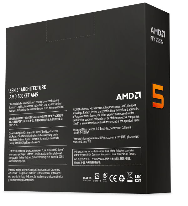 Với 6 nhân và 12 luồng xử lý, AMD Ryzen 5 9600X cung cấp hiệu suất xử lý ấn tượng cho một loạt các ứng dụng, từ các trò chơi AAA đến các công việc đa nhiệm hàng ngày. Xung nhịp cơ bản của Ryzen 5 9600X là 3.9 GHz và khả năng Boost lên đến 5.4 GHz. Sự kết hợp này cho phép CPU hoạt động mượt mà trong các tình huống yêu cầu sức mạnh xử lý cao. Các game thủ có thể yên tâm rằng Ryzen 5 9600X sẽ đáp ứng tốt các trò chơi mới nhất ở độ phân giải cao và cài đặt đồ họa tối ưu.