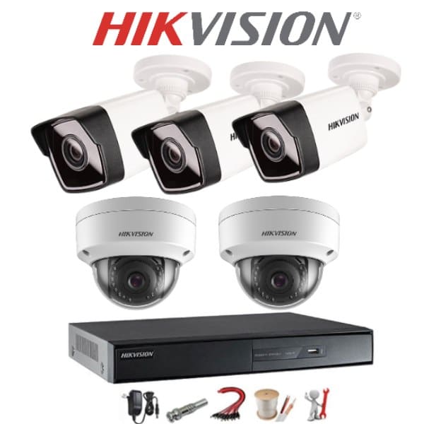 Trọn bộ 05 camera IP Hikvision [H2023-5IP] thích hợp lắp đặt trong phòng và ngoài trời camera độ phân giải 2.0MP cho hình ảnh sắc nét, tầm quan sát 30m và hỗ trợ hồng ngoại quán sát ban đêm, rất phù hợp lắp đặt cho gia đình, cửa hàng, văn phòng, shop thời trang, quán ăn, nhà hàng, …