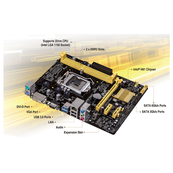 • Chipset Intel H81 cung cấp nền tảng ổn định với mức tiêu thụ điện năng thấp và hiệu suất ổn định cho các nhu cầu sử dụng thông thường.