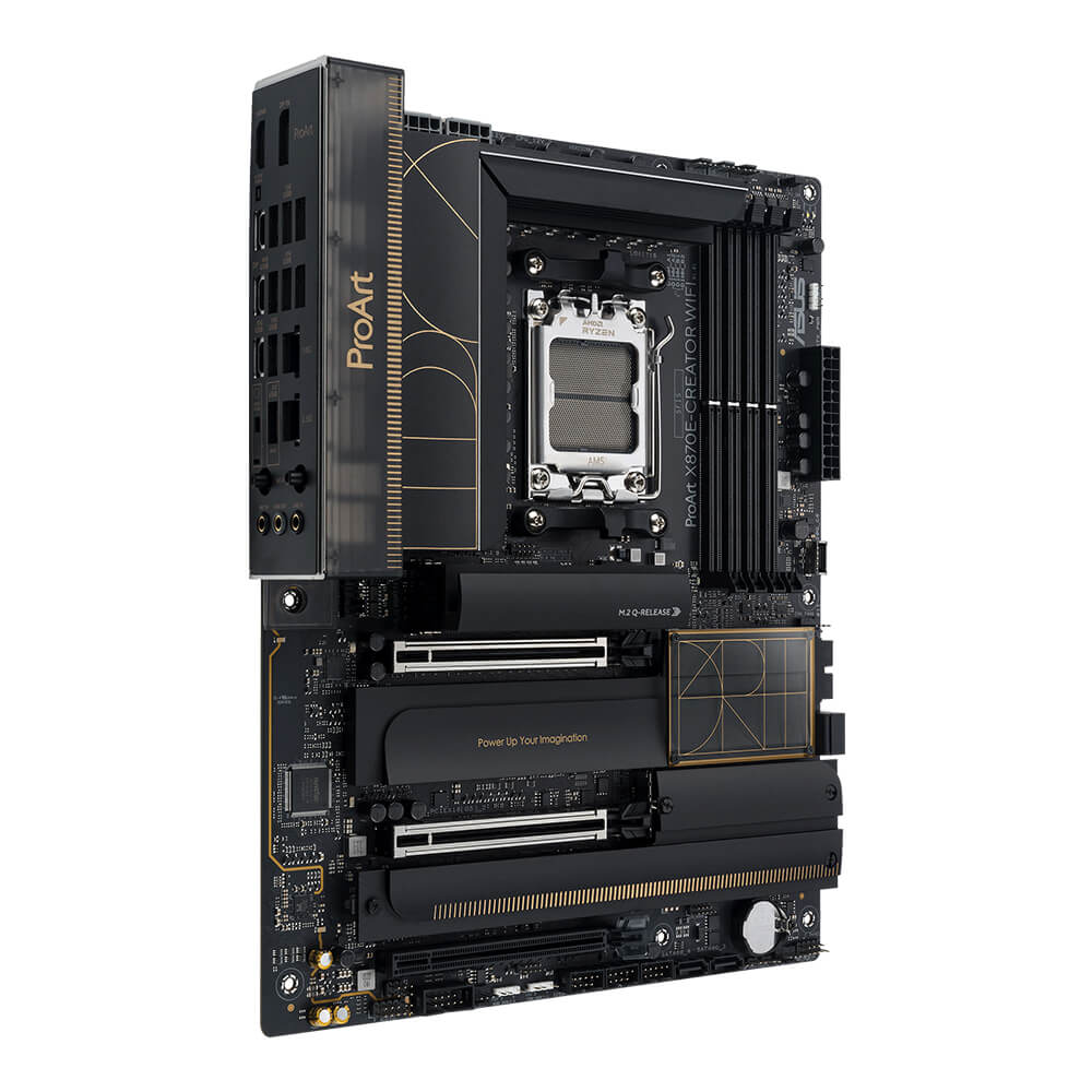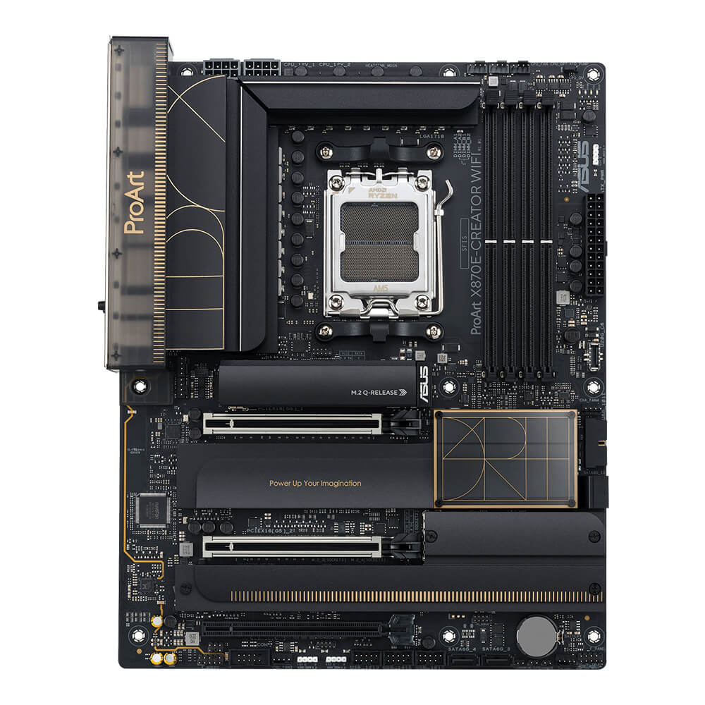 Asus ProArt X870E-CREATOR WIFI là bo mạch chủ lý tưởng dành cho các nhà sáng tạo nội dung, các chuyên gia và game thủ yêu cầu hiệu suất cao và ổn định. Với sự kết hợp của bộ vi xử lý AMD Ryzen™ thế hệ 7000, bộ nhớ DDR5, PCIe 5.0, Wi-Fi 6E, và các tính năng bảo vệ và mở rộng mạnh mẽ, bo mạch này sẽ giúp người dùng xử lý mượt mà mọi tác vụ từ chơi game 4K, chỉnh sửa video đến phát triển phần mềm chuyên nghiệp.
