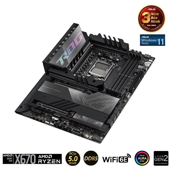 ASUS ROG CROSSHAIR X670E HERO là một bo mạch chủ tuyệt vời dành cho game thủ và các chuyên gia sáng tạo nội dung, với chipset AMD X670E, socket AM5, và PCIe 5.0 cho hiệu suất vượt trội và khả năng mở rộng tối đa. Với khả năng hỗ trợ bộ vi xử lý AMD Ryzen™ thế hệ 7000, bộ nhớ DDR5, Wi-Fi 6E, và các tính năng tối ưu hóa hiệu suất như AI CoolingAura Sync RGB, đây là sự lựa chọn hoàn hảo cho những ai muốn xây dựng một hệ thống mạnh mẽ và ổn định.