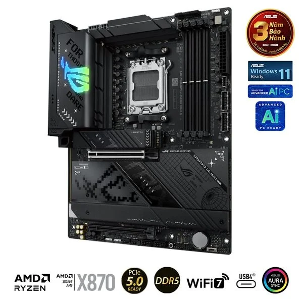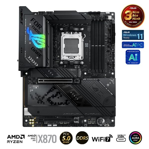 ASUS ROG STRIX X870-F GAMING WIFI là một bo mạch chủ ATX cao cấp, được thiết kế đặc biệt cho các bộ vi xử lý AMD Ryzen™ thế hệ 7000 sử dụng socket AM5 và trang bị chipset AMD X870E. Bo mạch này mang đến hiệu suất tối ưu cho các game thủ, nhà sáng tạo nội dung và người dùng chuyên nghiệp với các tính năng nổi bật như RAM DDR5, PCIe 5.0, và Wi-Fi 6E, đáp ứng nhu cầu cao về hiệu suất và khả năng mở rộng cho mọi ứng dụng từ chơi game đến làm việc sáng tạo.