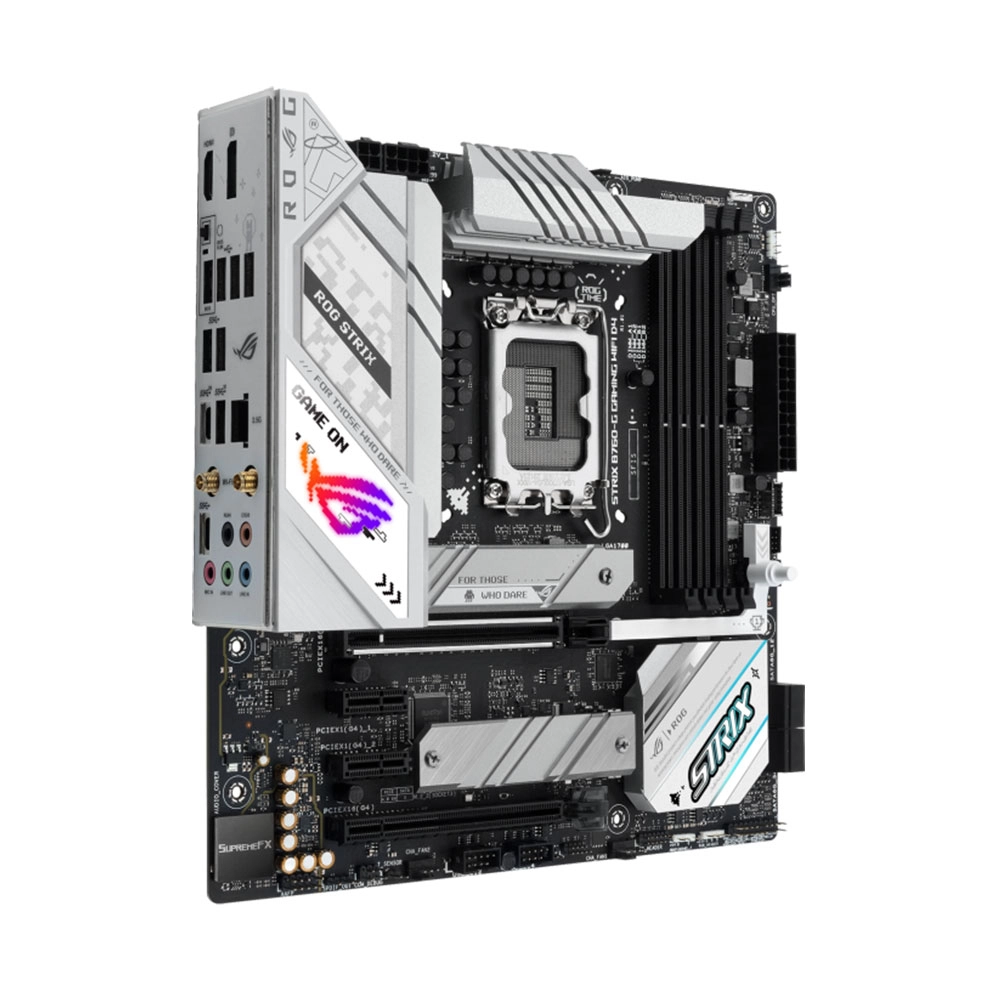 ASUS ROG STRIX B760-G GAMING WIFI D4 trang bị một khe PCIe 5.0 x16 và một khe PCIe 4.0 x16, giúp người dùng kết nối với các card đồ họa thế hệ mới và các thiết bị mở rộng khác. PCIe 5.0 cung cấp băng thông lớn gấp đôi so với PCIe 4.0, giúp cải thiện hiệu suất cho các tác vụ đồ họa và các ứng dụng yêu cầu băng thông cao.